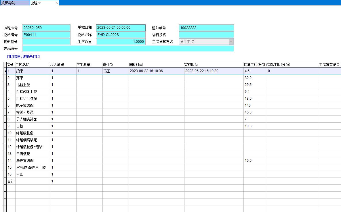 3、有些企業的流程卡需要填寫很多工藝要求,因此流程卡手工制作,從MES系統中打印流程卡標簽貼在流程卡上