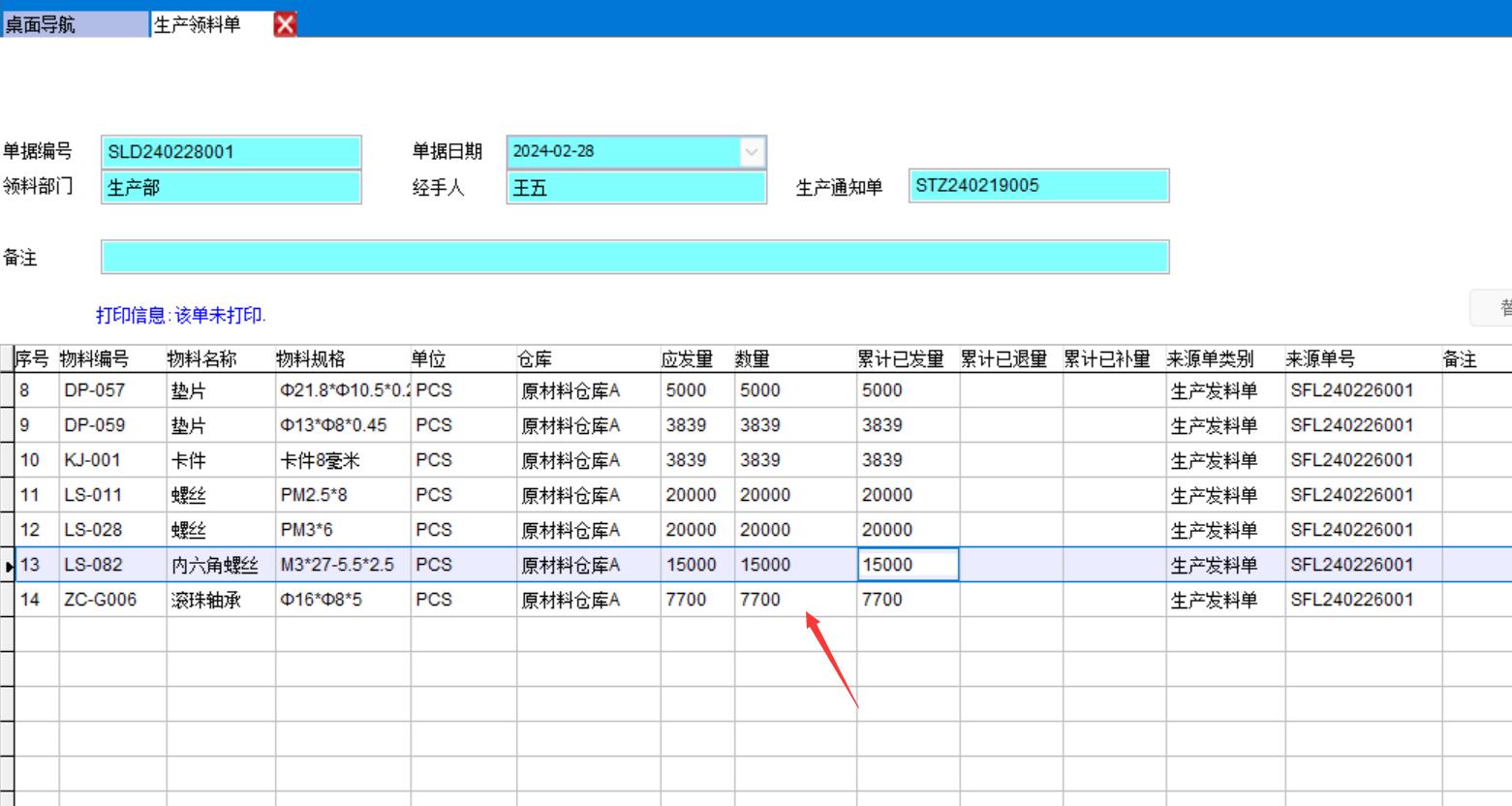 生產實際需求數量是7678個,但是系統會按50的整數倍計算得出應發數量7700,倉庫實際發給車間7700個,剩余22個就在車間,系統在下個生產發料單時會先扣除這22個再計算還要給車間領多少料。