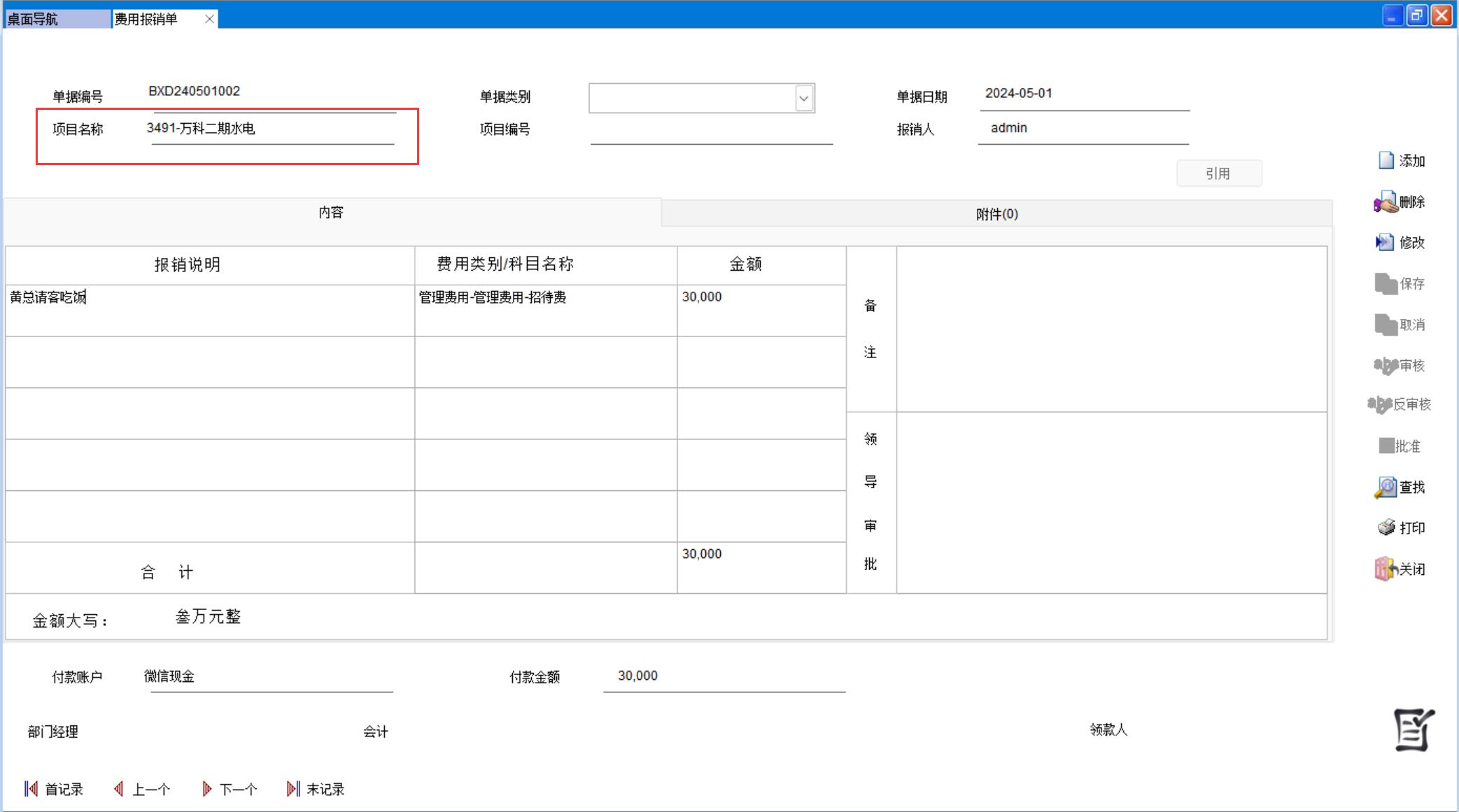 在所有單據(jù)上都要體現(xiàn)項目名稱