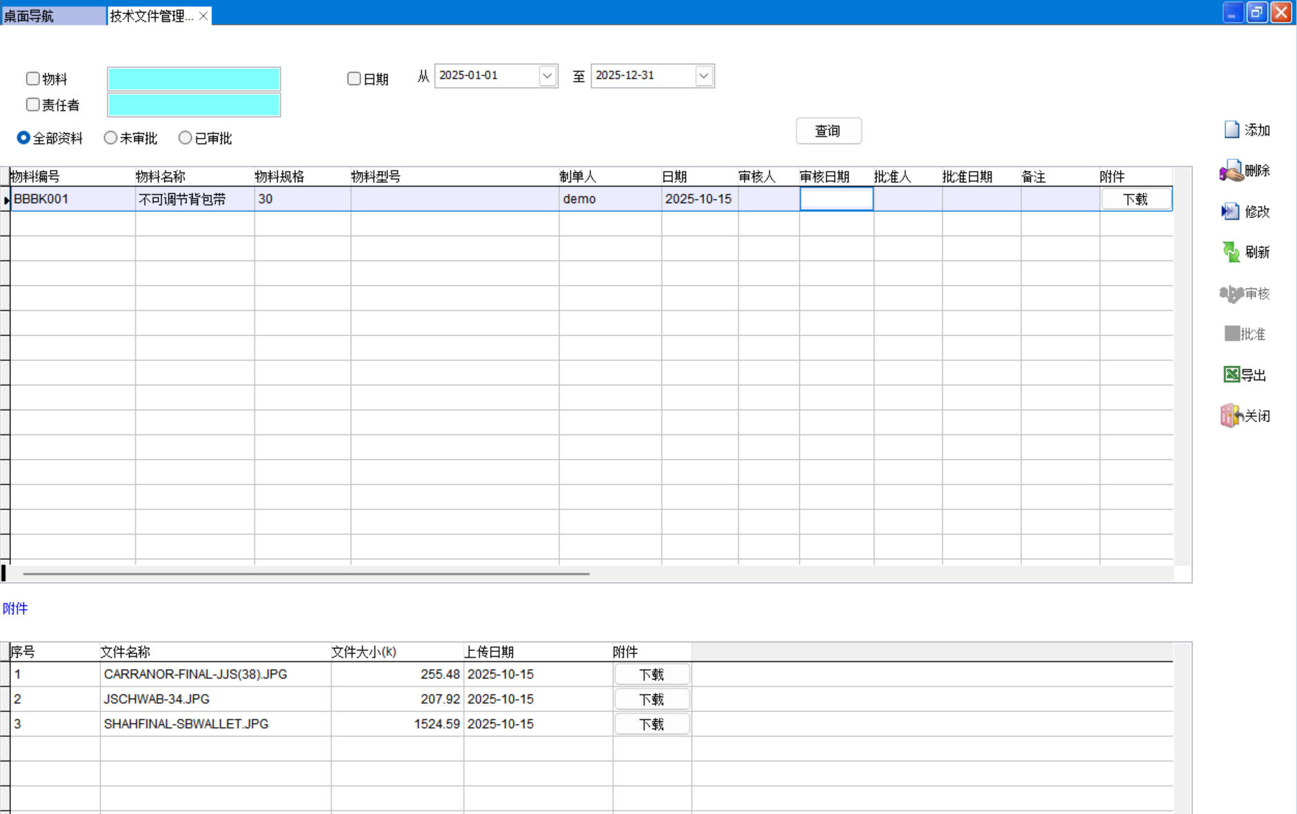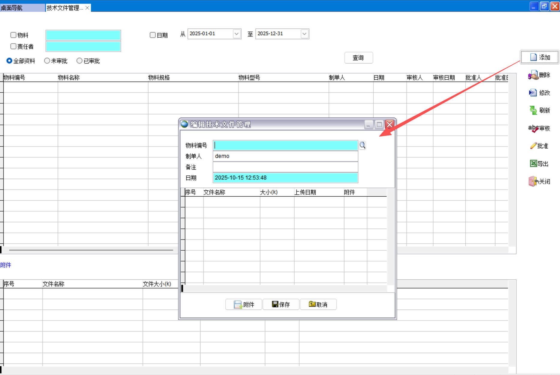 2、技術資料室需要文件名稱,可以和物料編號無關,技術文件管理是和物料編號綁定